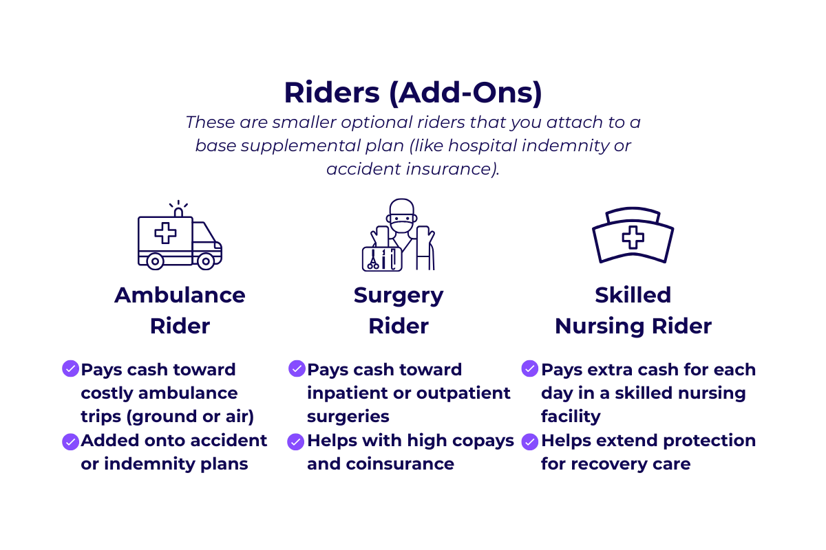 Ancillary insurance products are offered by private insurance companies. Benefits, premiums, and availability vary by state and carrier. This information is for educational purposes only and is not intended as a recommendation for any specific plan. Please review plan details with the insurer before enrolling.