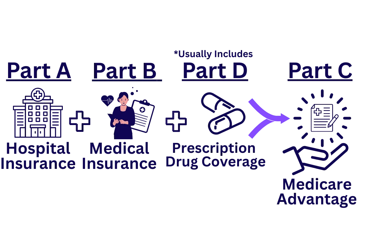 Medicare Advantage Plans combine your Part A (Hospital Insurance) and Part B (Medical Insurance) coverage, and many plans also include: